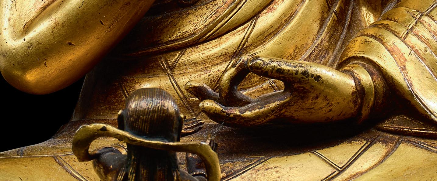 Buddhism was born around the 6 th century BC, in the foothills of the Himalayas, around the figure of Siddhārtha Gautama, prince of the Himalayan kingdom of Shakya. His destiny changed when he experienced a series of encounters with suffering, old age, illness and death that shook him to the core. He gave up his life of comfort to search for a deeper meaning to life. After years of searching, he attained enlightenment under a tree at Bodhgayā and became the Buddha, ‘the Awakened One’. His first sermon at Sārnāth founded Buddhism, a spiritual path centred on the understanding of suffering and inner liberation. This path, which originated in India, gradually spread to Central Asia and then eastwards, using trade routes and diplomatic networks in particular. In East Asia, it took root at the cost of a transformation and syncretism that enabled it to integrate societies whose philosophical, religious and aesthetic systems had largely pre-existed its arrival.