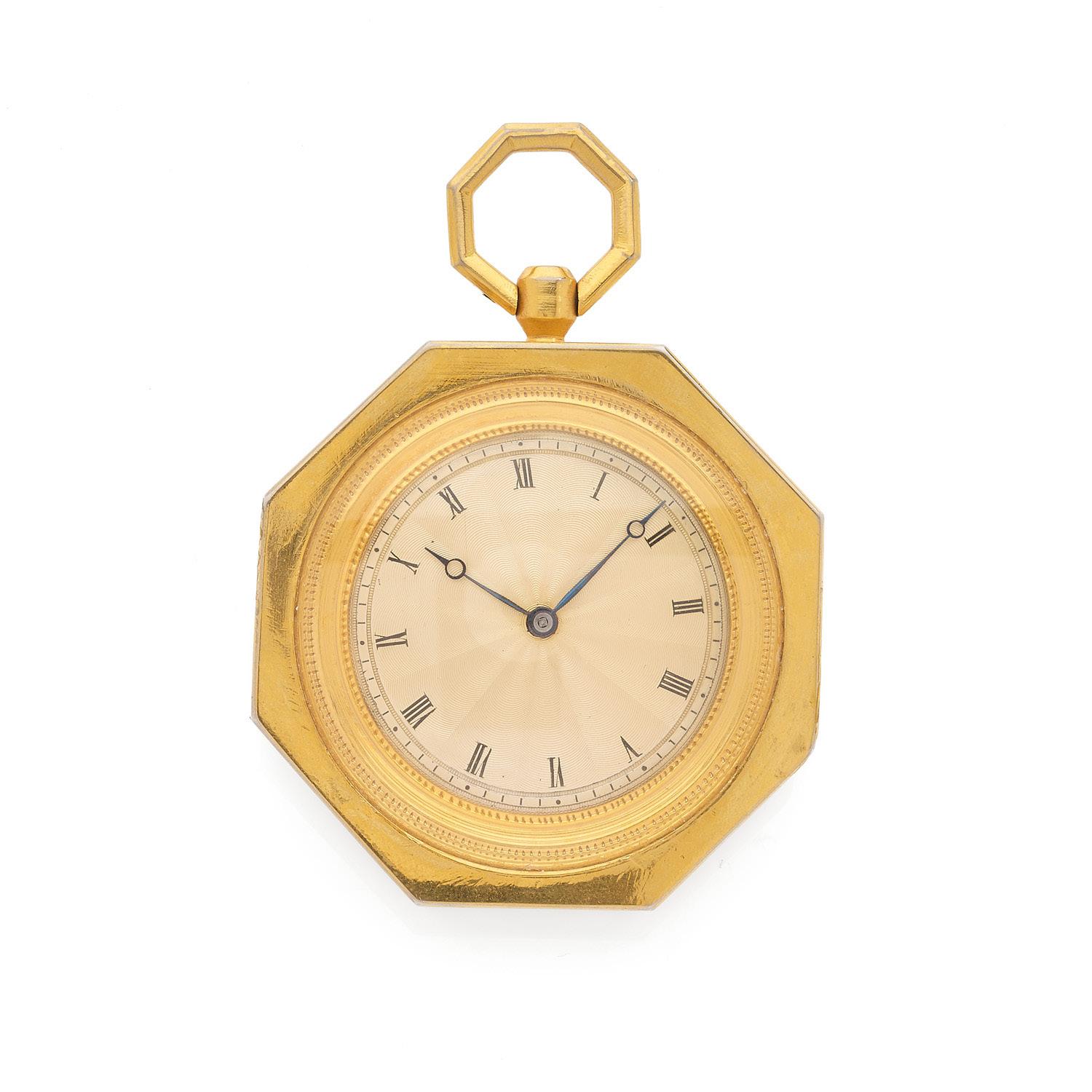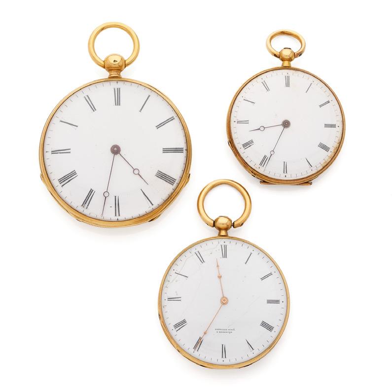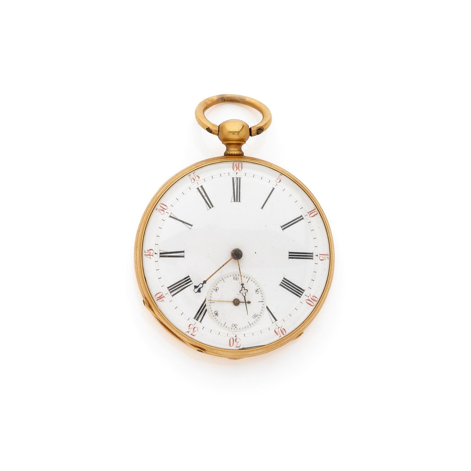 Cadran : doré à centre noir, index chiffres romains et minuterie peints, aiguilles pommes ajourées, signé