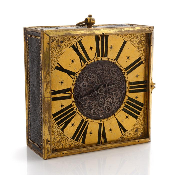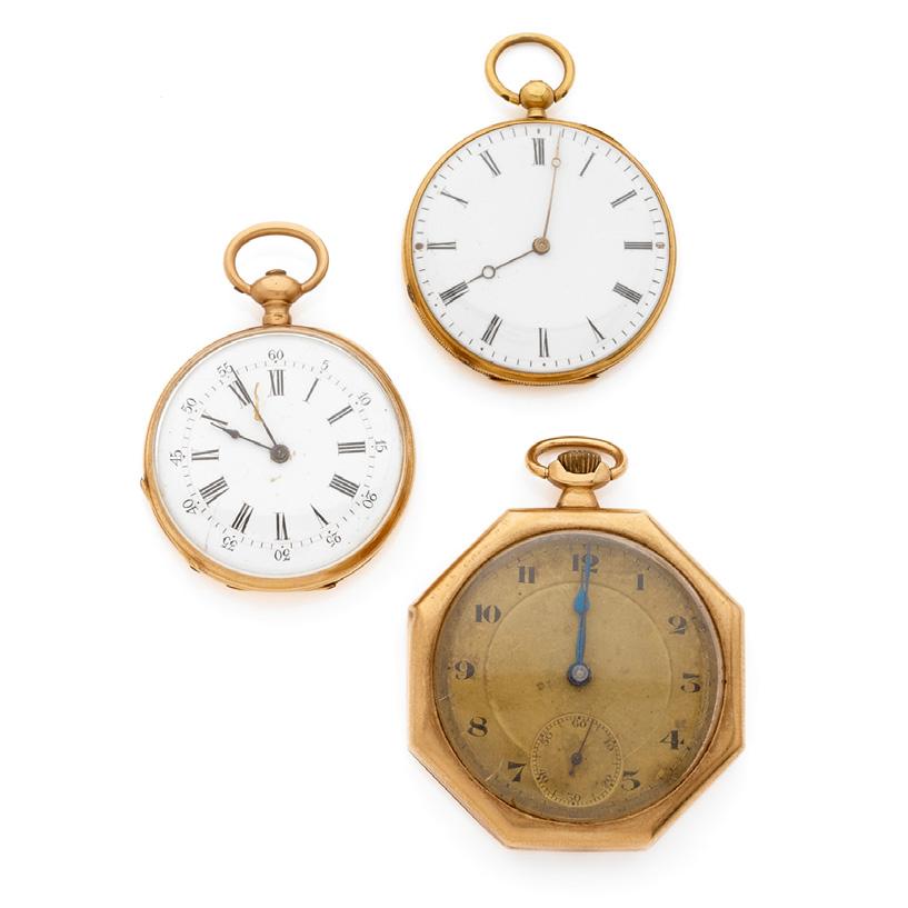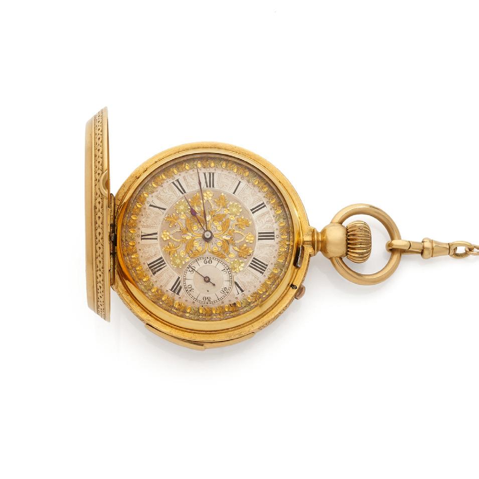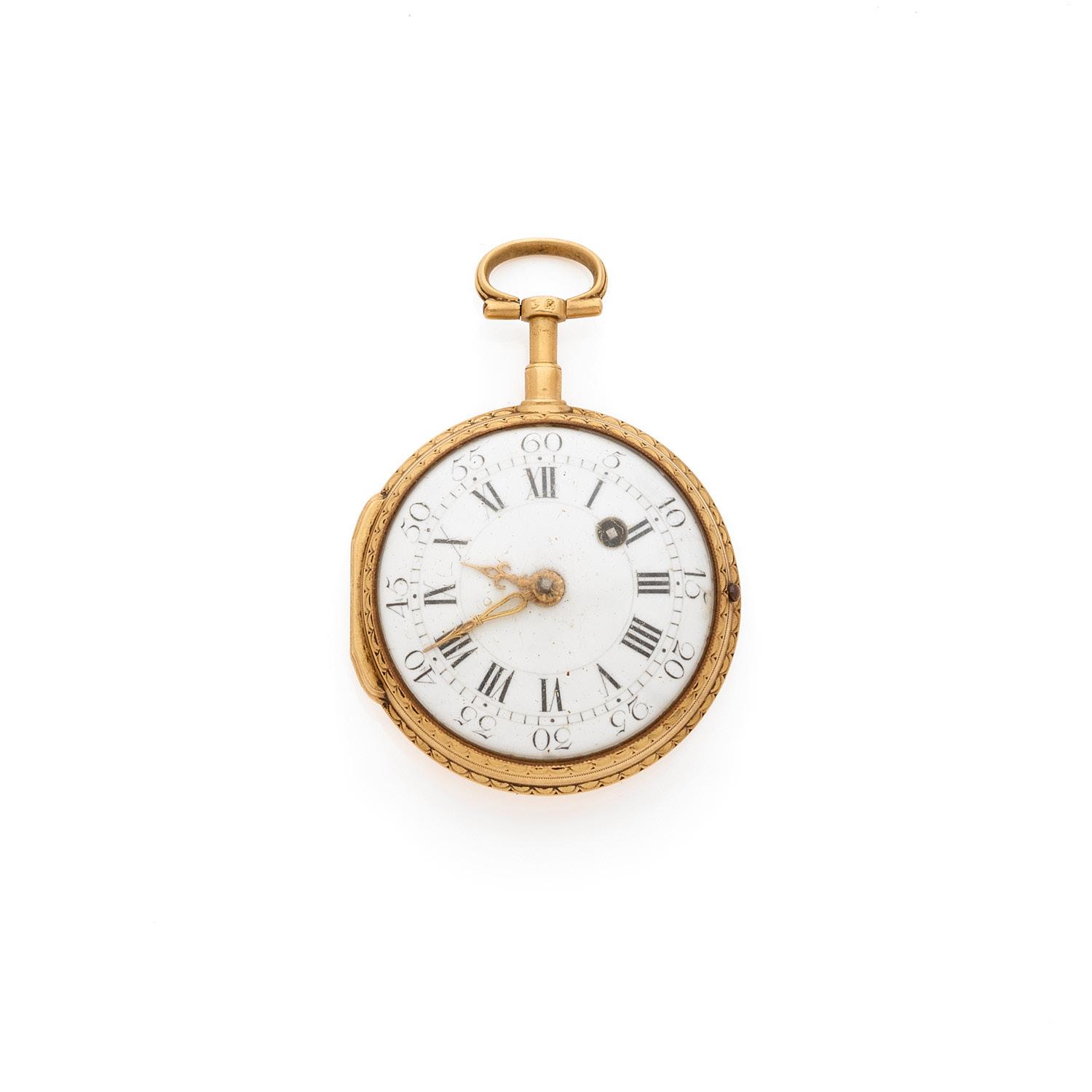 Cadran : doré à centre noir, index chiffres romains et minuterie peints, aiguilles pommes ajourées, signé