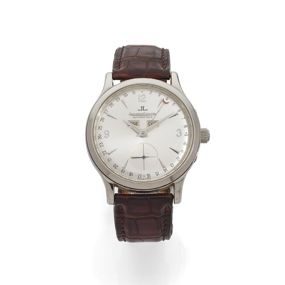 Boîtier : rond, fond fermeture à vis avec logo gravé au centre et portant la mention « Master », correcteurs sur la carrure, signé Cadran : argenté avec index et chiffres arabes appliqués, double guichet pour l’indication des jours de la semaine et des mois, date chemin de fer, petite trotteuse, signé