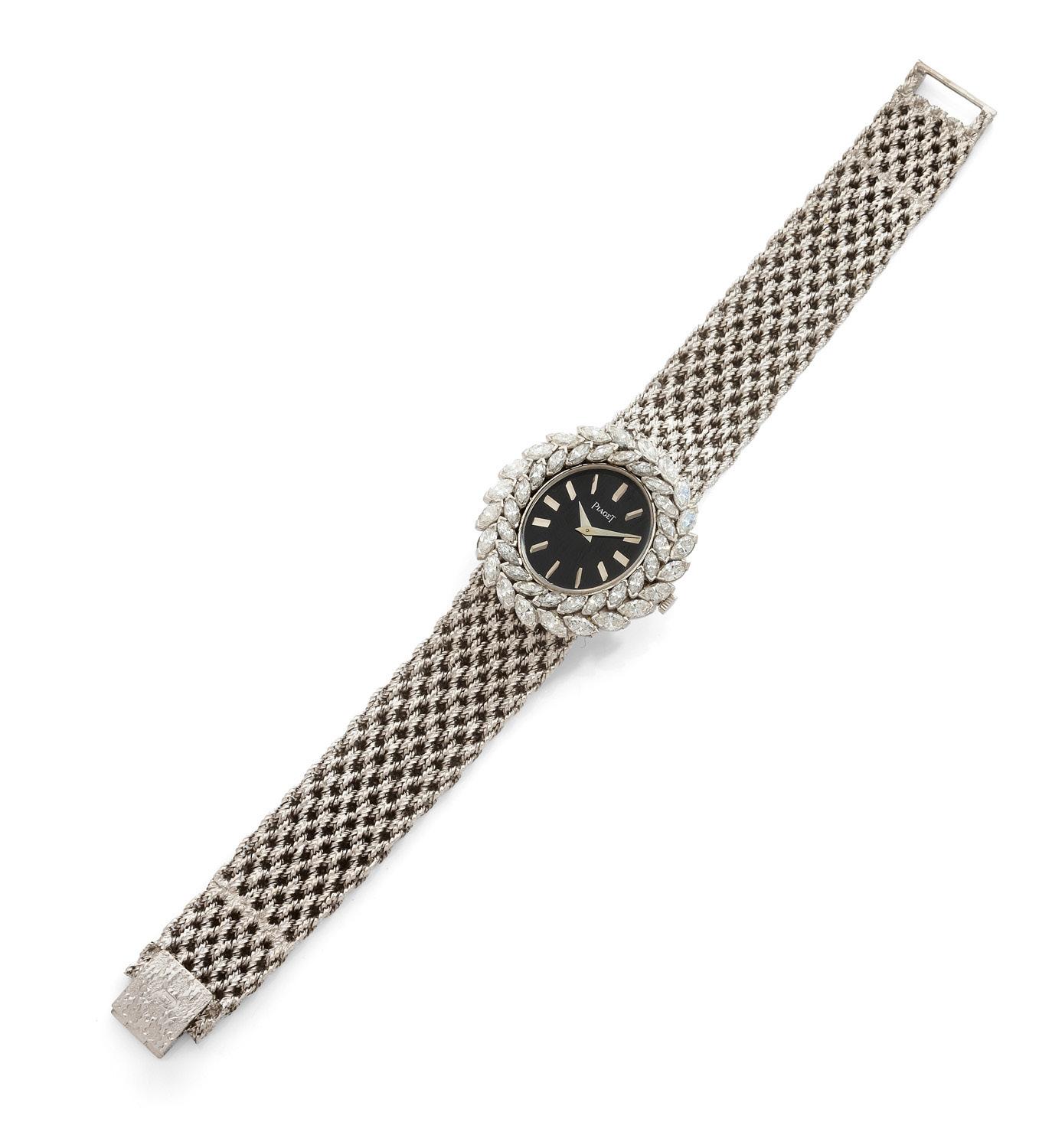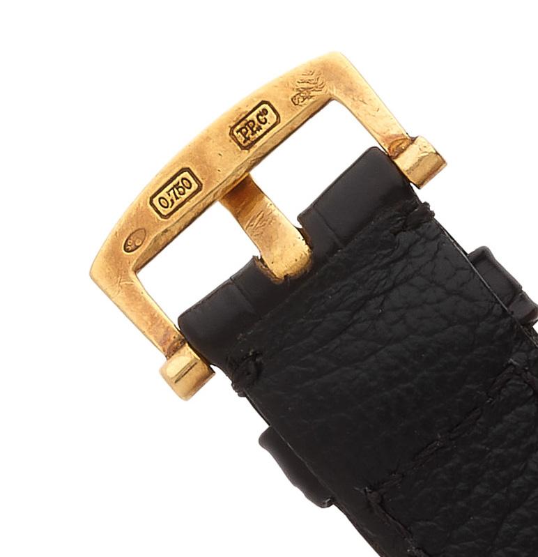 Cadran : blanc, index chiffres romains appliqués, aiguilles feuilles grises, signé Mouvement : mécanique à remontage manuel, signé - Calibre 21 (Base Frédérique Piguet 21)