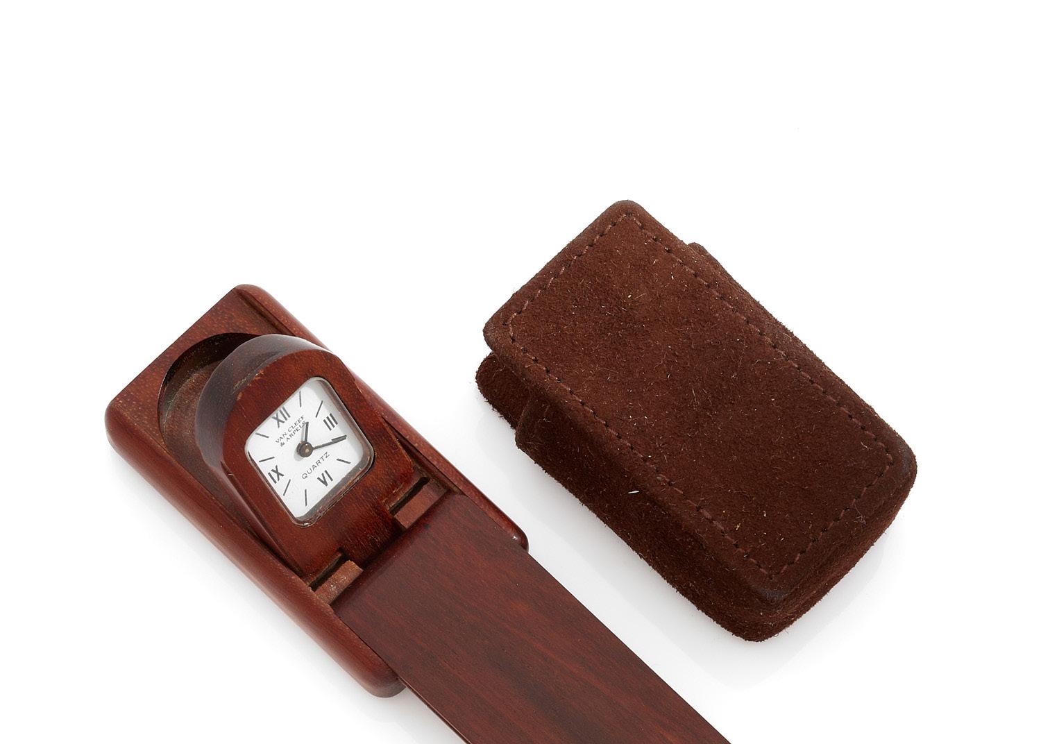 Boîtier : rond, couronne cannelée, fond clipsé transparent, signé