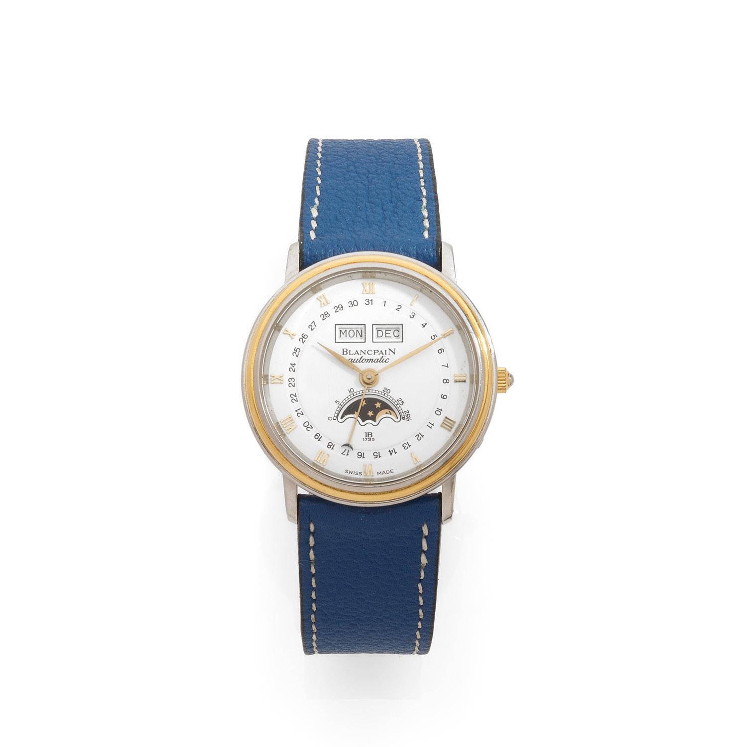 Montre bracelet en acier avec triple calendrier et phases de la lune