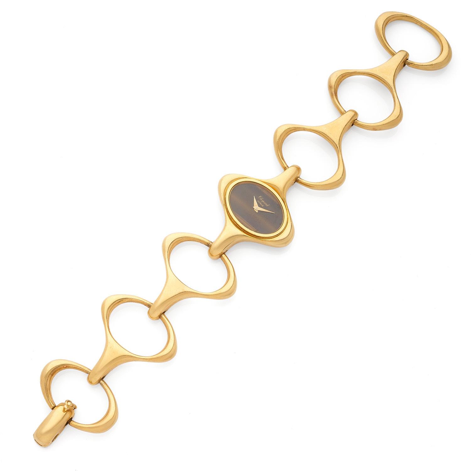 Bracelet / Fermoir : en cuir avec fermoir déployant en acier, signé