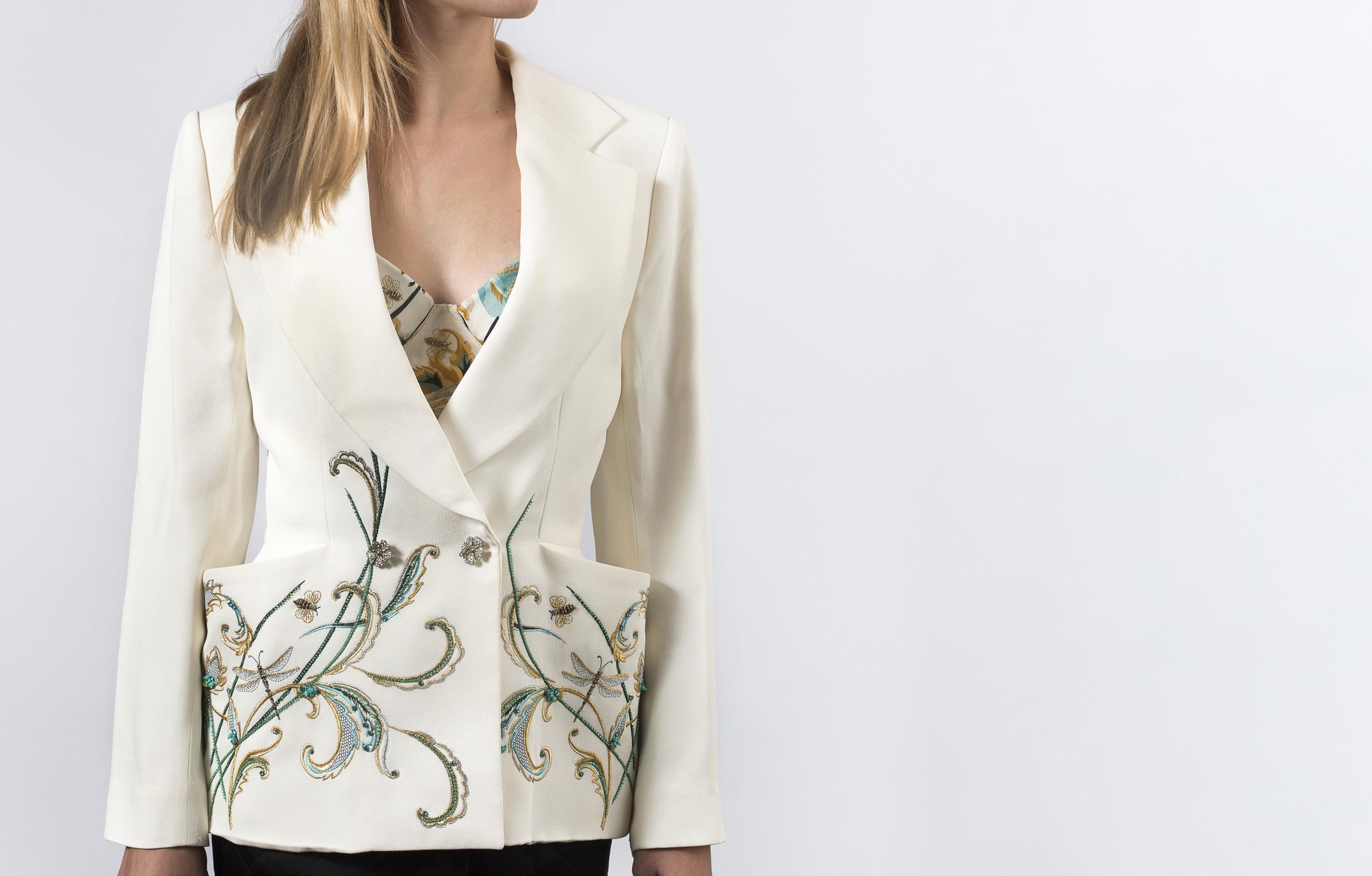 Dior Veste Bar et corsage coordonné en soie ivoire brodée de motifs floraux et végétaux En vente le 11 décembre
