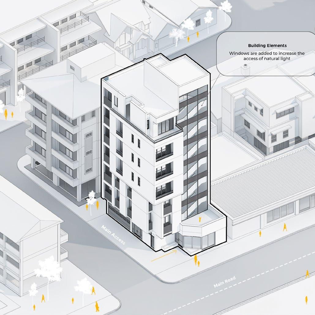 Another notable feature of the building is the communal terrace on the top floor, which provides residents with a shared outdoor space where they can relax, socialize, and enjoy stunning views of the city. The terrace is designed with comfortable seating, greenery, and even a small barbecue area, providing a perfect space for hosting small gatherings or enjoying a quiet evening alone.