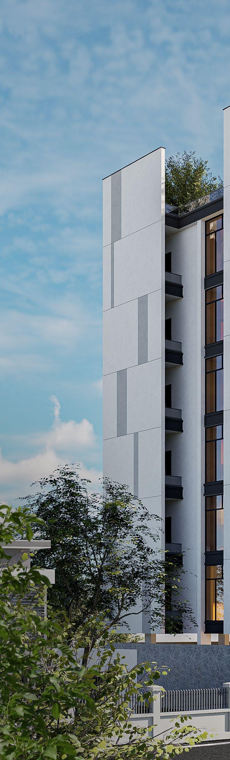 The commercially rich podium is a unique feature of the building, providing a range of amenities for residents and visitors alike. The shops and restaurants offer a convenient and vibrant place to shop and dine, while the mix of materials and textures creates a visually interesting and dynamic space. The terrace of the building is a true oasis in the heart of the city. It features a pool, lounge areas, and a restaurant, providing the perfect place to relax and unwind after a long day. The terrace is also designed to host events and gatherings, with plenty of space for socializing and entertaining.