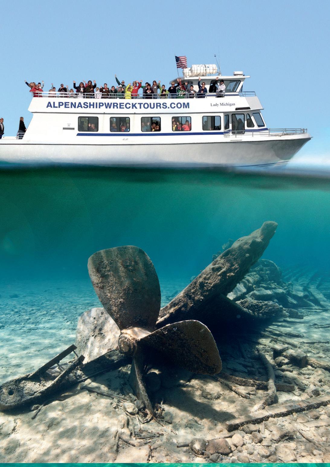 Public cruises in the glass bottom boat Lady Michigan will begin in May and the crew will chauffeur visitors to shipwrecks in Thunder Bay while sharing a brief history on the fates of the fallen ships. It also provides people an opportunity to take photos of the shipwrecks without having to put on a wetsuit.