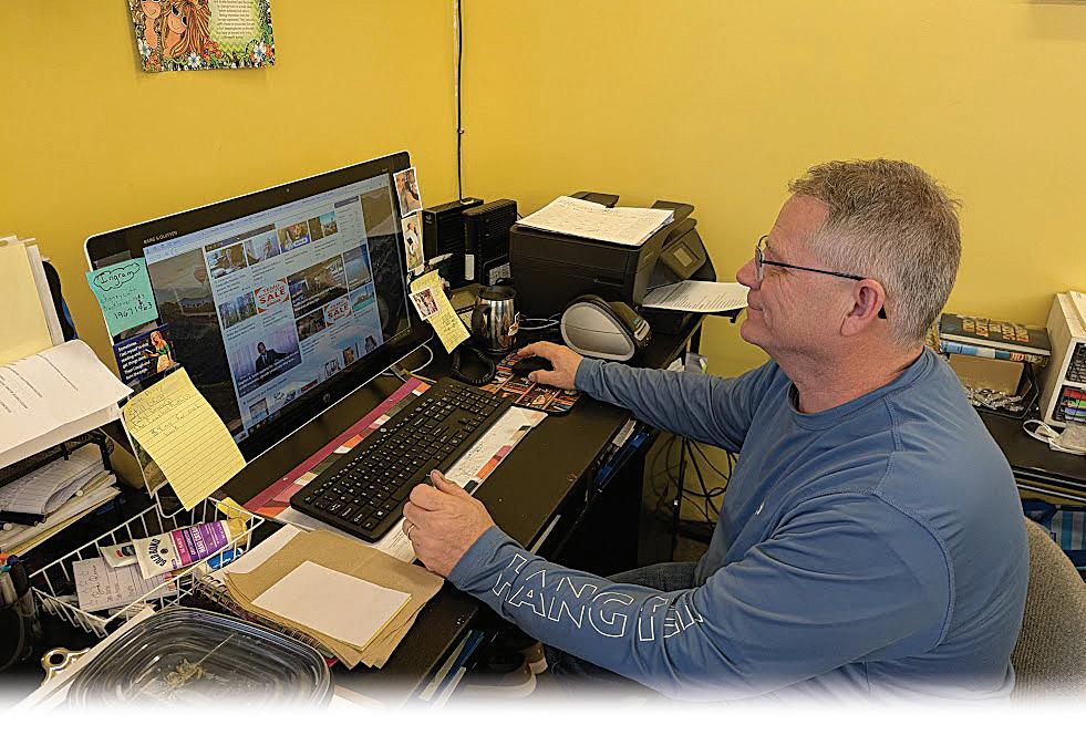 Bruce Honeycutt surfs the internet at Turn the Page Bookstore recently.