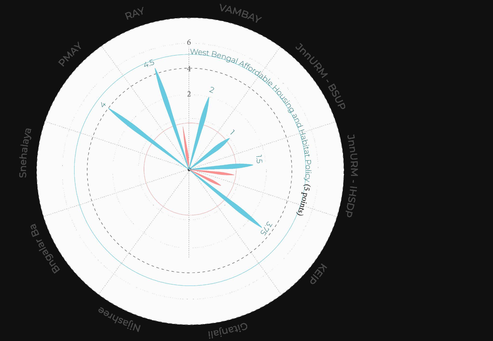 WB Housing Policy, prepared by IPE Global for MoHUA in 2015 ranks highest in comparison to all schemes, however the measures are not reflected in its schemes as it is not implemented. 4