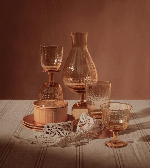 Jubilee på glas och porslin i den klassiska servisen Swedish Grace. Detta som en hyllning till Rörstrands unika arv, hantverk och formgivning sedan grundandet 1726. Jubilee är en varm, dämpad karamellton med inslag av terracotta som fångar den harmoniska balansen mellan historia och samtid.
