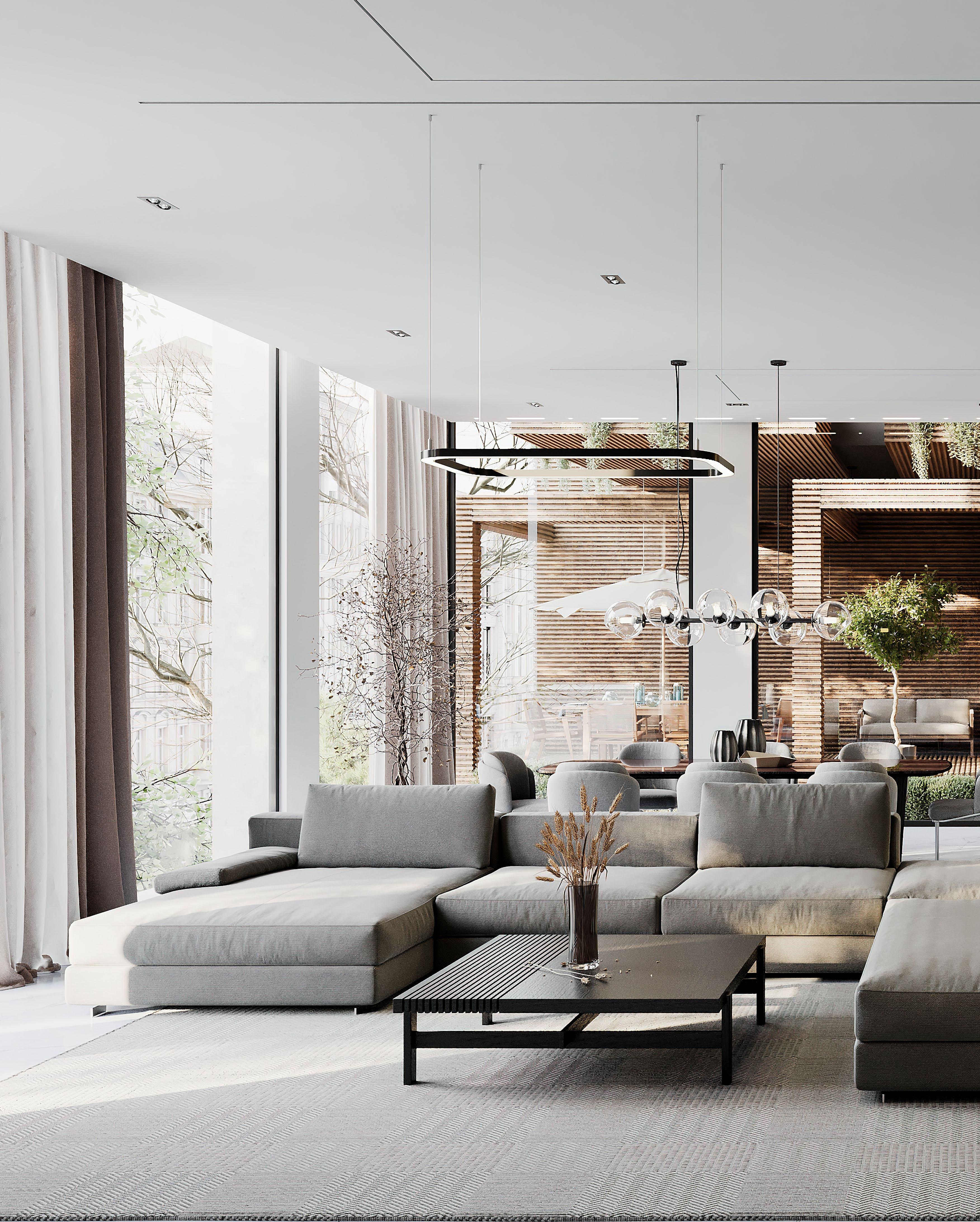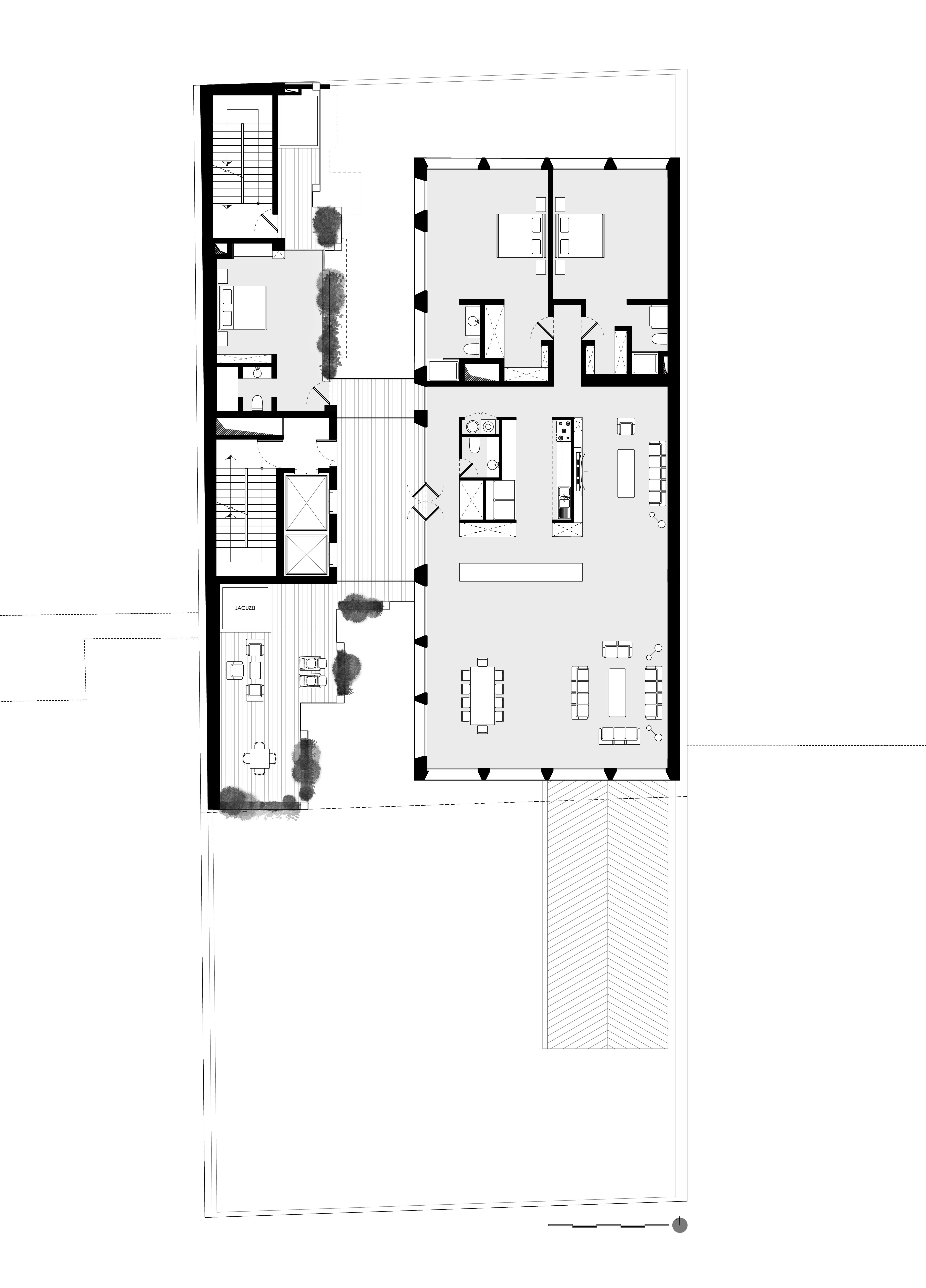 THE PART WITH THE TERRACES AND GREENERY IS LOCATED ON THE AXIS THAT THE EXISTING TREES ARE STANDING.