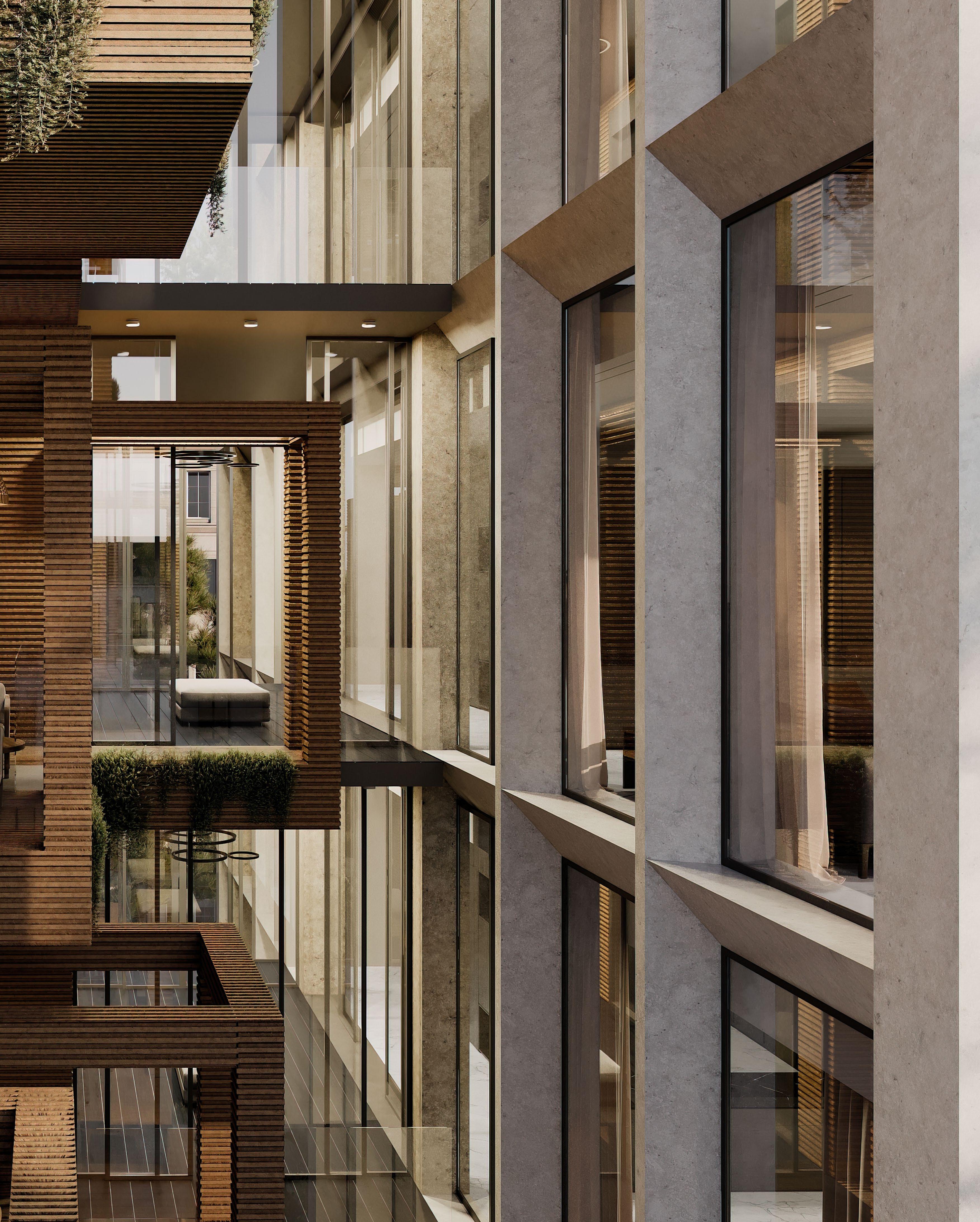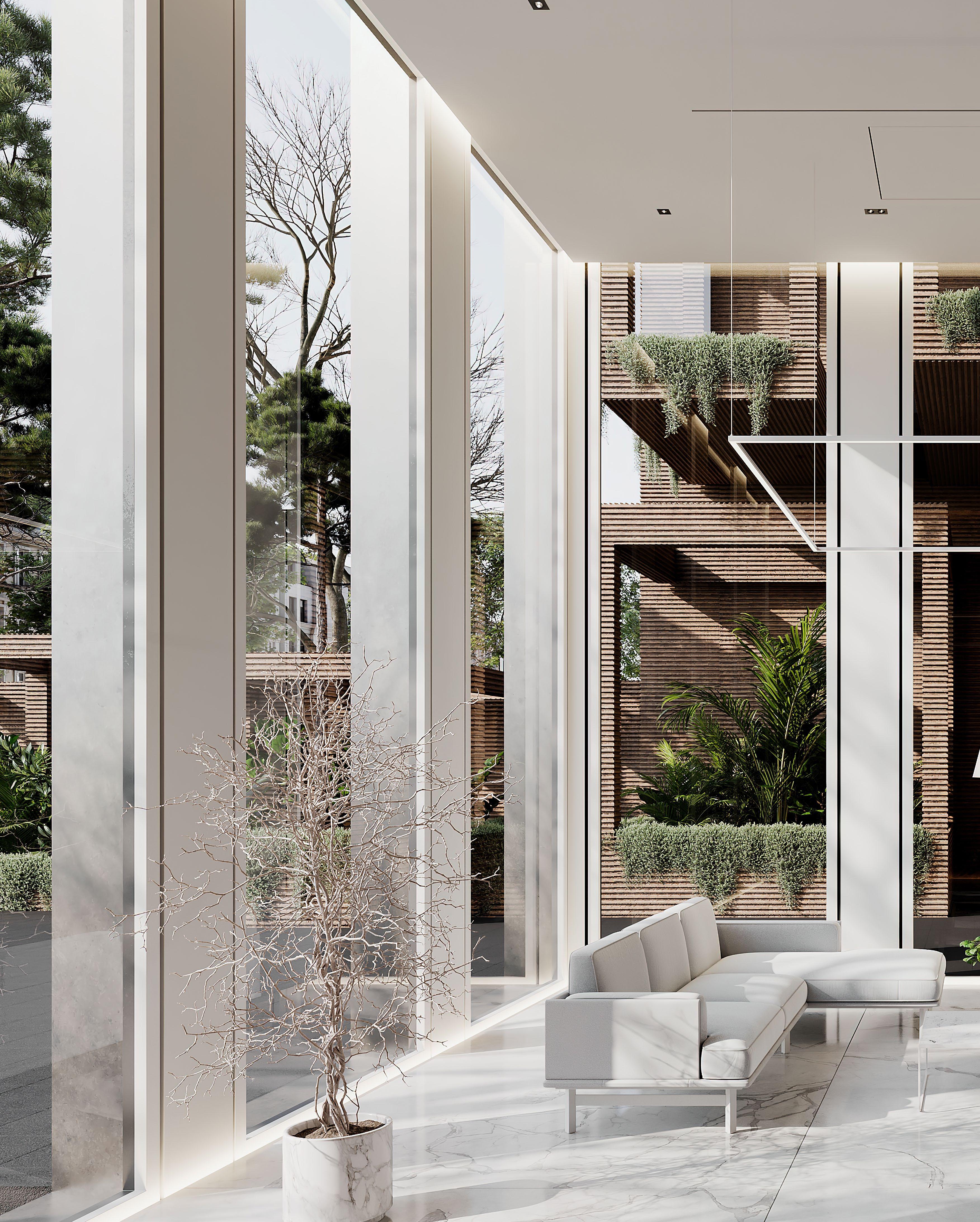 THE EXISTING GREENERY AXIS INFILTRATES INTO ALL ELEVATIONS OF THE BUILDING.