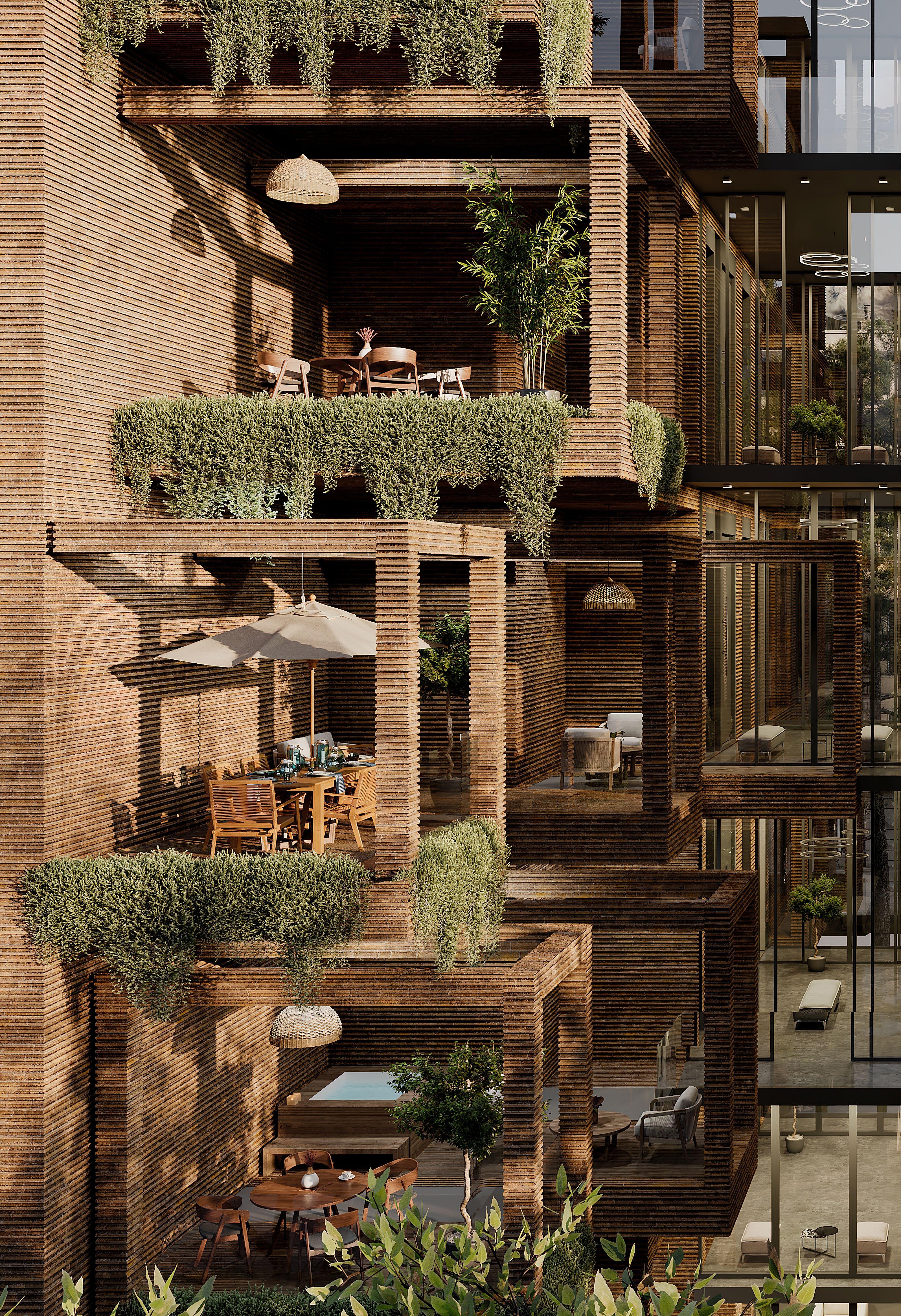 THE NATURE’S INFILTRATION PRODUCES A DIVERSITY OF TERRACES AND SPACES SIMILAR TO TREE HOUSES.