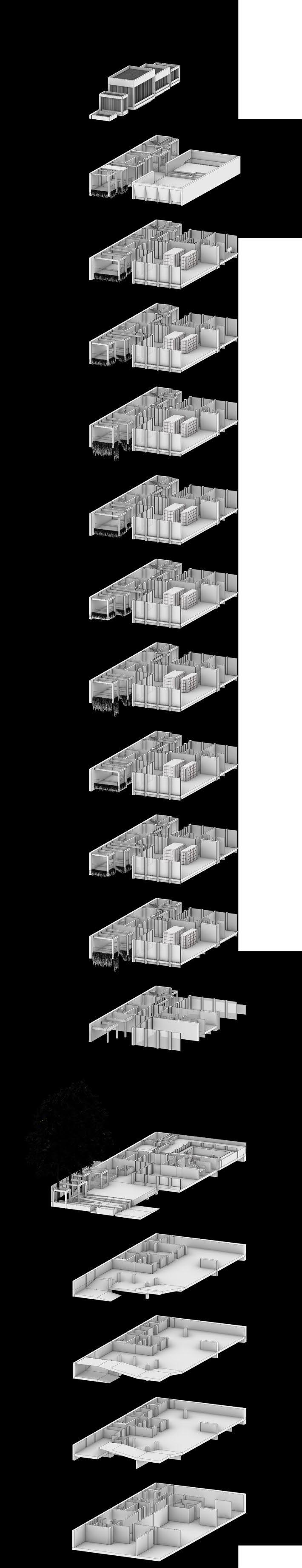 THE BUILDING HAS TWO PARTS: ONE THAT IS A NET SIMPLE FORM AND ONE THAT HAS A DIVERSITY OF TERRACES. TWO PARTS ARE CONNECTED THROUGH A BRIDGE WHICH IS THE ENTRANCE SPACE