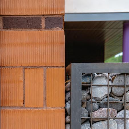 tiles and the structures’ terracotta roof, and complementary spatial design, including placing trees to maximize visibility from patio to playground, stitch the two spaces together.