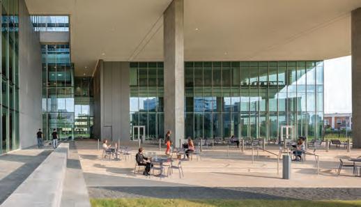 Now data centers are commonplace in response to consumer demand and continuing to evolve — with a high price tag. In 2020, California-based Equinix, one of the largest data center firms in the world, paid a record $800 million for the Infomart, among the largest property acquisitions in North Texas. According to Equinix, the Infomart building is the fifth densest hub in the United States for banking, commerce, telecommunications, energy, medical research, and health care, along with transportation companies. With a growing need for more capacity, the campus recently completed a $142 million addition. DA11, the four-story, stateof-the-art center, is the first phase for the International Business Exchange (IBX) data center and its 5G and Edge Proof of Concept Center (POCC). Plans call for additional phases to double the size and capability of the space. Designed by Gensler and built by DPR Construction, the building is a striking contrast to the Infomart with solid, precast concrete walls that allow the form to follow function.