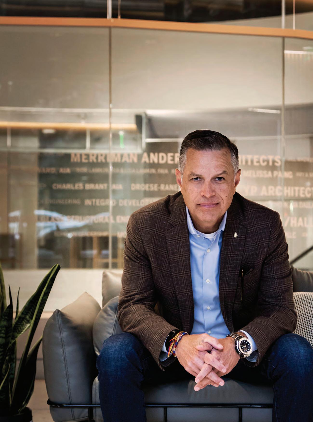 within a city, at a time when Fort Worth was enduring an image crisis. The building featured two towers, retail mall space, an ice-skating rink, and offices, as well as the signage that spelled out the building name in lightbulbs. After construction on the center was completed and earning two major awards, Growald did some small projects for Neiman Marcus. Then one day, after a six-month dialogue and years of trying to meet Trammell Crow Sr., Growald called Junior, who spontaneously told him to “come on over at 6.” The rest is history, and it includes Growald completing eight buildings for the Crows.