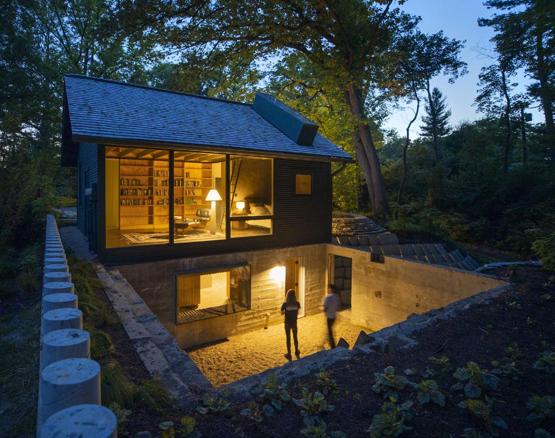 A long-admired childhood cottage on Crystal Lake is transformed into a full-time home. Inspired by the Petoskey stone, the addition is a polished contrast to the stone of the existing house. It’s a quiet, personal work—where memory, material, and light come together to create something both grounded and refined.