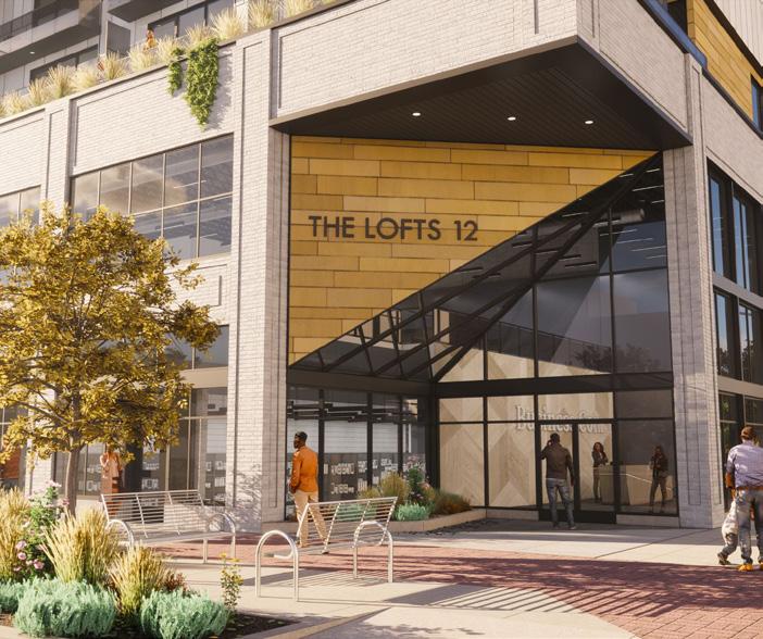 The Lofts 12 conceptual design reimagines a two-story building as a vibrant five-story mixed-use development that blends historic charm with modern materials. With bronze panels, expansive glazing, and stepped-back residential units, the design supports retail, office, residential, and event spaces—balancing contrast and cohesion in a future-forward, community-focused hub.
