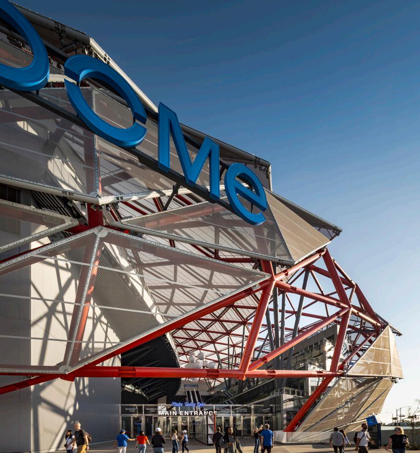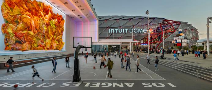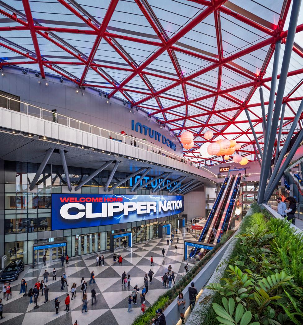Setting a benchmark in sustainable sports architecture, Intuit Dome is 100% carbon-free and LEED Platinum–certified. Inside, innovations like the halo scoreboard and frictionless concessions redefine the game-day experience. Beyond the court, the venue transcends sport, becoming a year-round community destination elevating every experience for fans, athletes and artists alike.