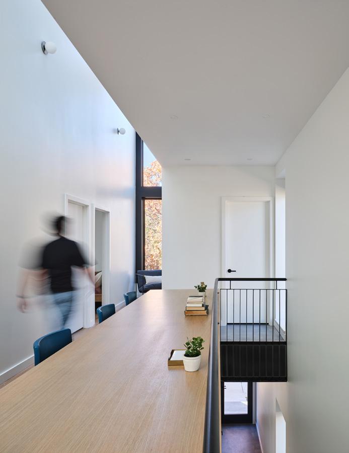 The intent of the house was to integrate the home into the existing firstgrowth suburb it is located. We worked with the slope of the site to create a reverse split. This allowed the home to appear as a single story from the street.