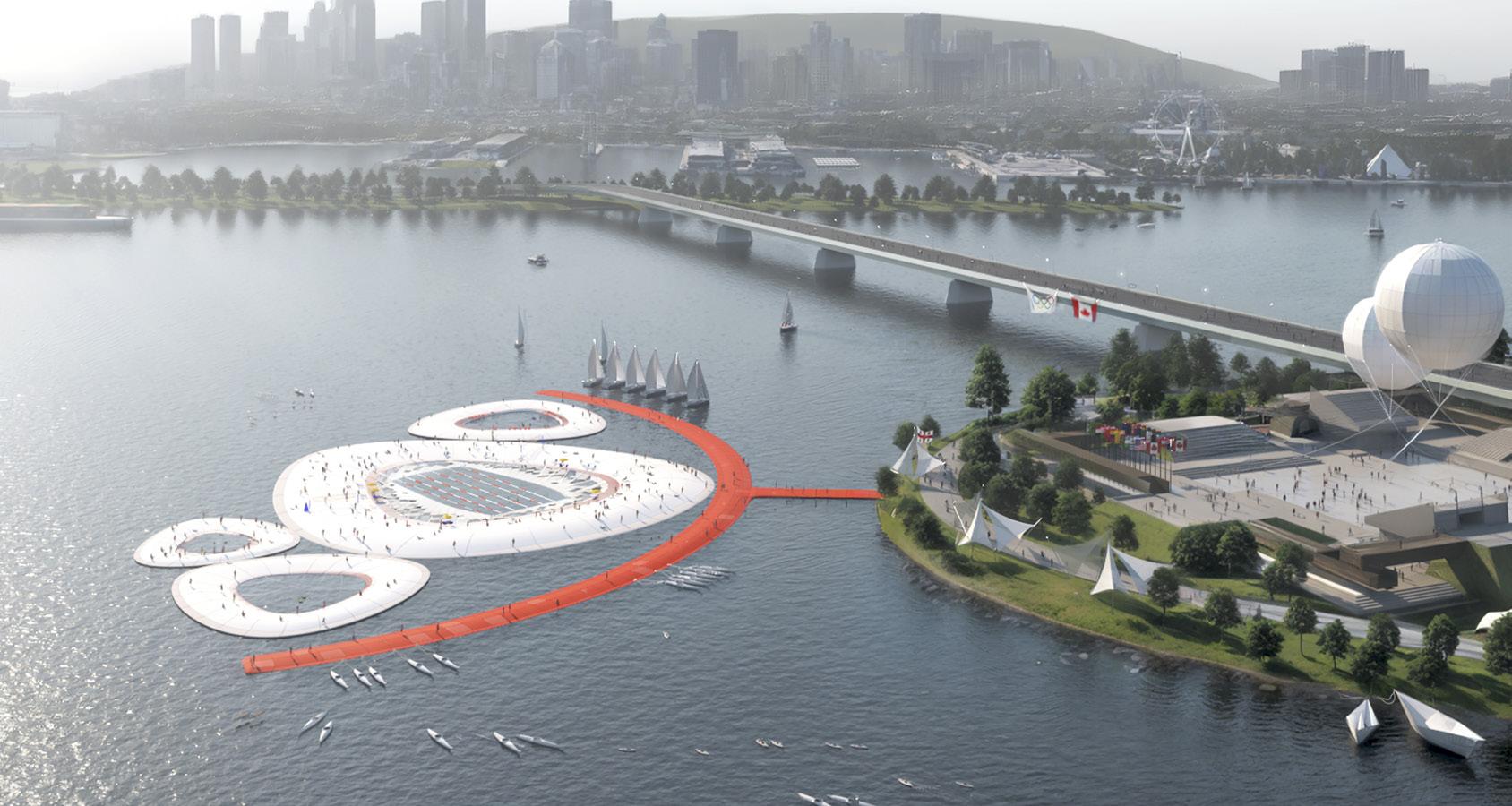 FLOAT reimagines Montreal's Olympic Stadium roof as a floating public space on the St. Lawrence River. Through its symbolic reuse of iconic materials, it creates a playful, contemplative environment that reconnects citizens with the river, fostering reflection, recreation, and community engagement while promoting circular architecture and sustainability.