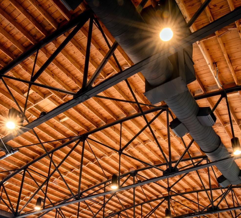 Ceiling and structural diaphragm systems were removed to reveal historic bowstring trusses and wood decking, transforming this 75-year-old gym into a warm, expressive space. Lighting, flooring, acoustic, structural, and finish upgrades were carefully integrated, aligning with CAIR’s mission to support individualized education through environments that reveal potential and celebrate authenticity.