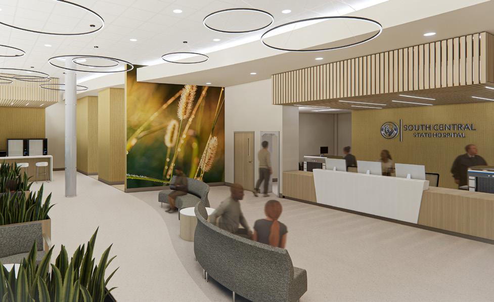 This ground-up, two-story mental health hospital expands access to behavioral health services through a design focused on dignity, safety, and healing. The facility includes single-occupant and ADA-compliant rooms, therapy spaces, clinical exam rooms, a pharmacy, wellness suites, dining areas, gyms, multipurpose spaces, staff offices, and interior courtyards.
