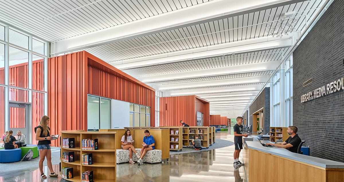 With a focus on advancing literacy, upholding community values, and embracing inclusivity, this new elementary school is centered around the concept of the “hero’s journey,” positioning each student as the protagonist of their own story. Flexible grade-level neighborhoods, activated by environmental graphics, and a central media enter foster collaboration, imagination and discovery.