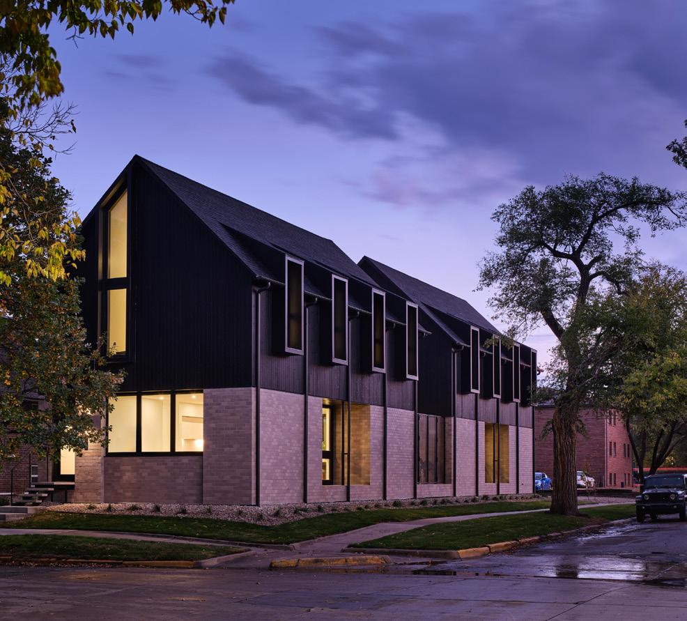 Located in a re-developing neighborhood, the Collegiate house carefully considers the vernacular of the region and creates a unique living environment for students, while respectfully fitting into the single-family fabric of the neighborhood. The architecture is simple and direct in its form, recalling vernacular barn structures of Central Kansas, with materiality informed by the burning of the prairie and the natural limestone of the Kansas Flint Hills.
