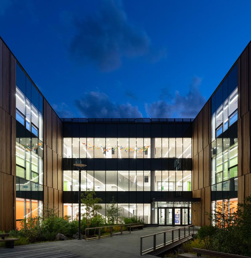 The D’Youville University Health Professions Hub seeks create a healthier community via design. The building incorporates variations in its façade as it addresses is various contextual conditions and provides a warm and welcoming environment with vibrant public art, textures, colors, and light.”