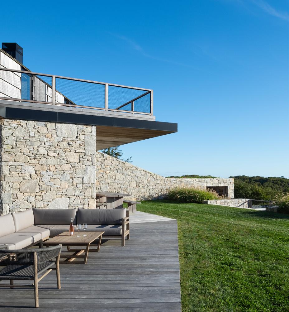 The Main House is a communal space that can be utilized as a library, dining room, and contains a lounge, fireplace, and bar. The dining room accommodates 80 guests. Hidden below the green terrace is a full featured spa, fitness room, and a deck area with a pool.
