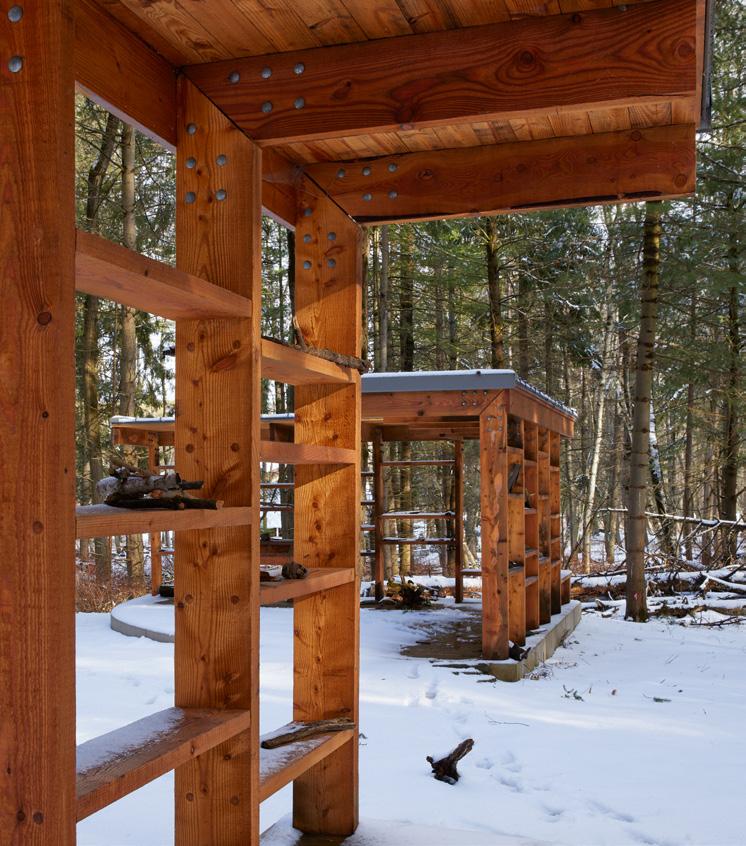 “Elegant curving geometries that radiate and permeate the building and site. The materials and form of the atrium recall the Oneida people’s longhouse.”