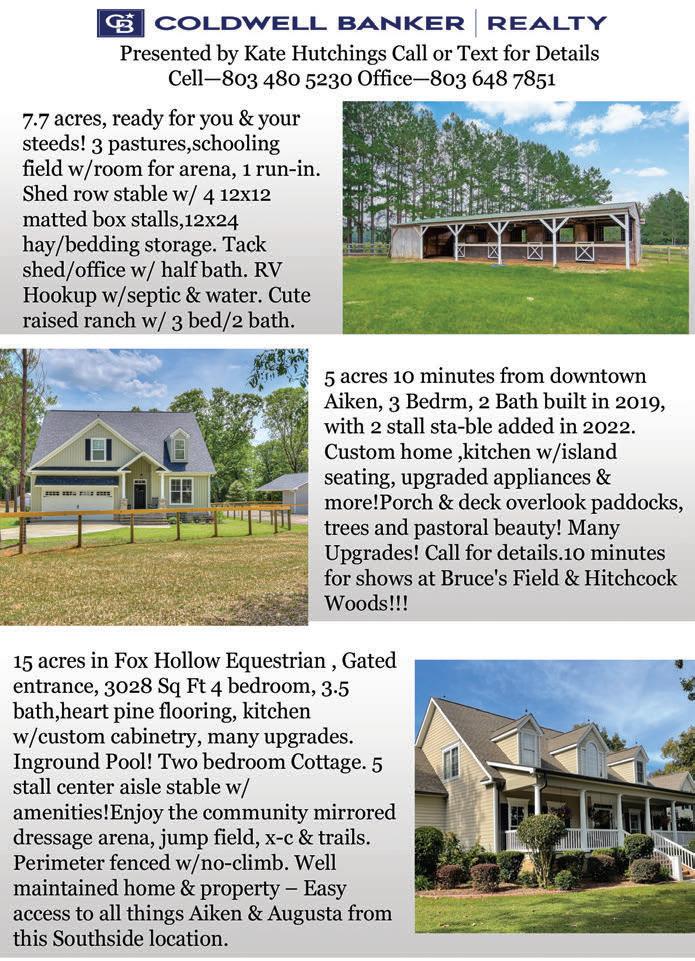 4 The Aiken Horse October-November 2022 803-640-0123 for estates, farms, homes & land. phone: 803.640.0123 aikenhomes@me.comFINE HOMES AIKEN TEAM your best friend in real estate