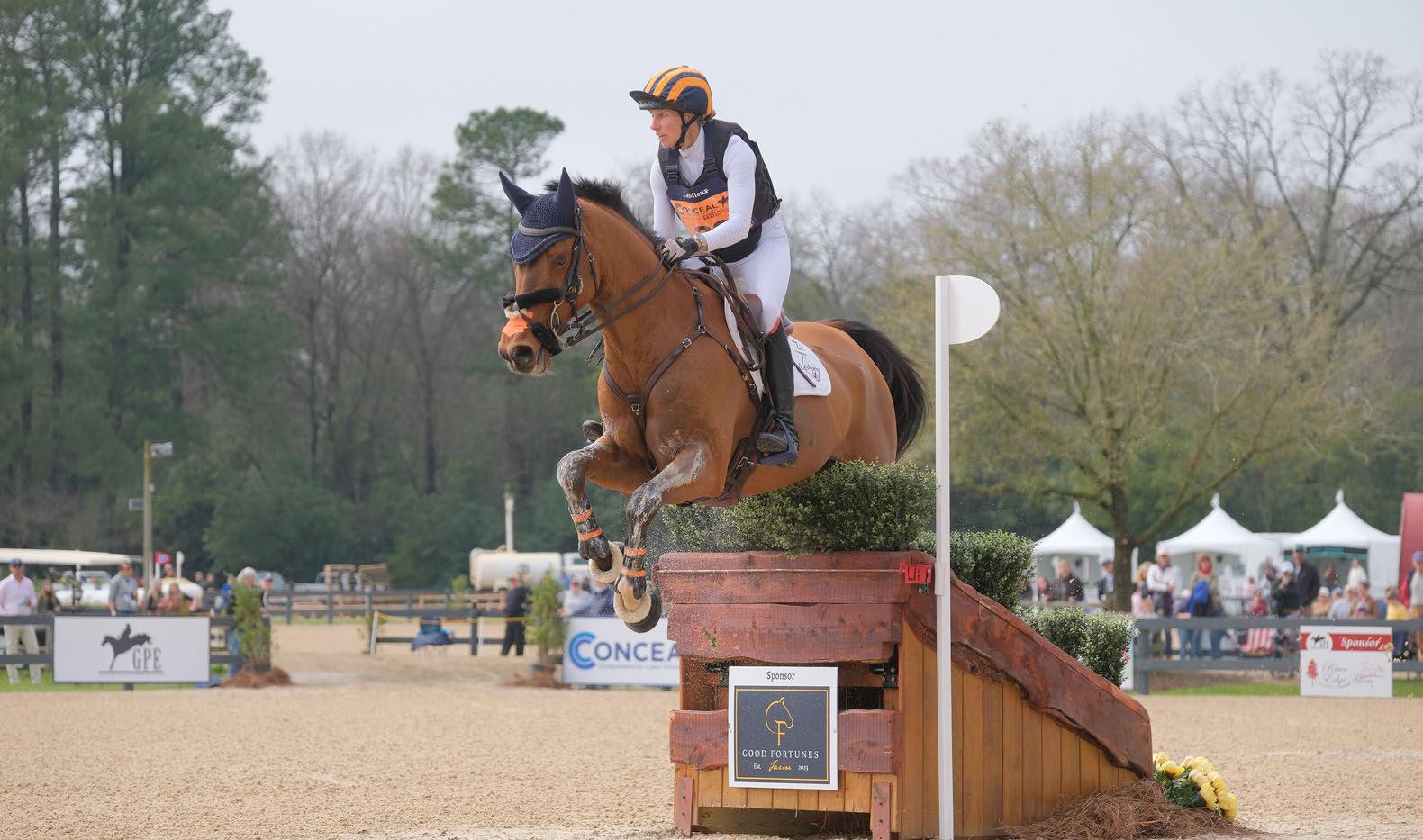Leading from start to finish, Will Coleman handily won the $100,000 Conceal Grand-Prix Eventing Showcase at Bruce’s Field in the Aiken Horse Park on March 1-2, 2024, riding Chin Tonic, owned by Hyperion Stud. The last to leave the cross country start box on Saturday, Coleman could relax and enjoy the ride, since he was in the enviable position of already holding the top position with his other horse, Off the Record, and was thus guaranteed the win. But “Chin”