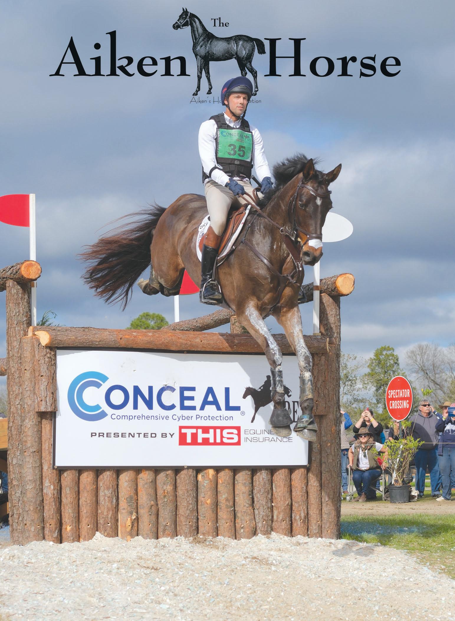 What a fantastic season we have had this winter in Aiken! We’ve been busy going to as many equestrian events as we can, and there has been something happening here almost every day. You’ll get a taste of all the action in this issue, starting with our cover story on the $100,000 Conceal Grand Prix Eventing Showcase. Once again, we had so many pictures of this spectacular event at the Aiken Horse Park we dedicated extra pages to it, including our feature article and the center spread of the first section.