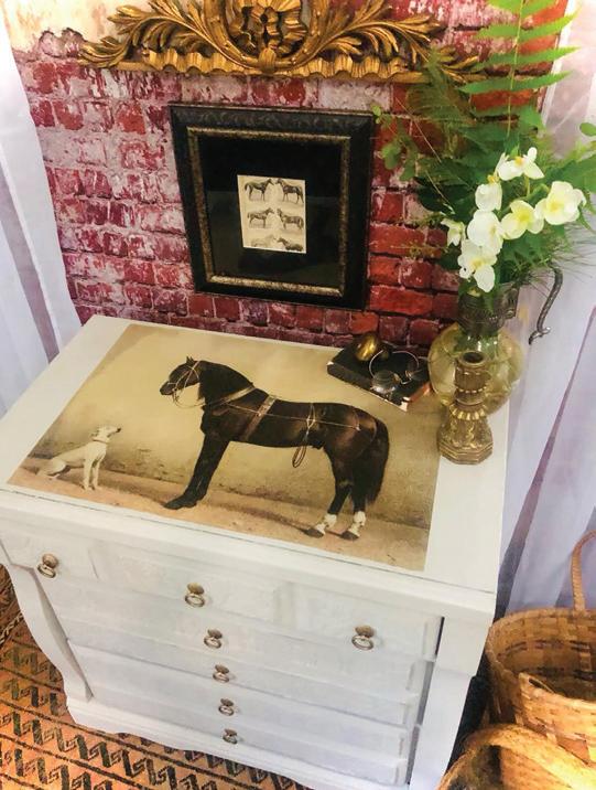 Designer Paula Metcalfe has used her gift for decorating to develop a unique equestrian-themed business. Charleston Chalks offers horse lovers truly one-of-a-kind items of furniture. Clients choose from either new or newly refurbished pieces, with a choice of chalk paint finish and a custom image—and unlike most things equestrian, these pieces won’t break the bank!