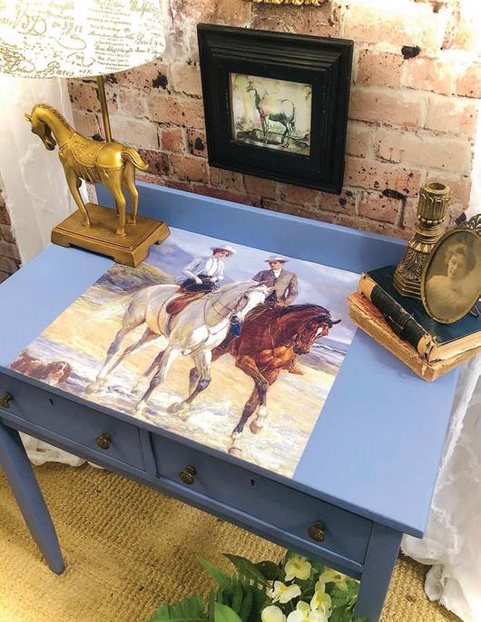 Paula Metcalfe’s flair for design, her artistic abilities and her appreciation for the timeless appeal of equestrian images led to the creation of her one-of-a-kind furniture business. Charleston Chalks, based in Charleston, South Carolina, offers horse lovers hand-painted furniture and decorative items with equestrian images. Each piece is unique and handmade: selections range from new to reclaimed furniture with a variety of options, including custom images and a choice of chalk paint finishes.
