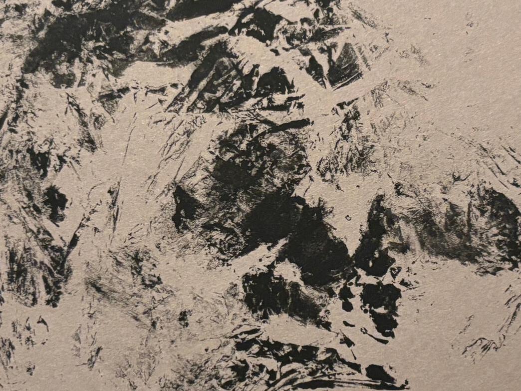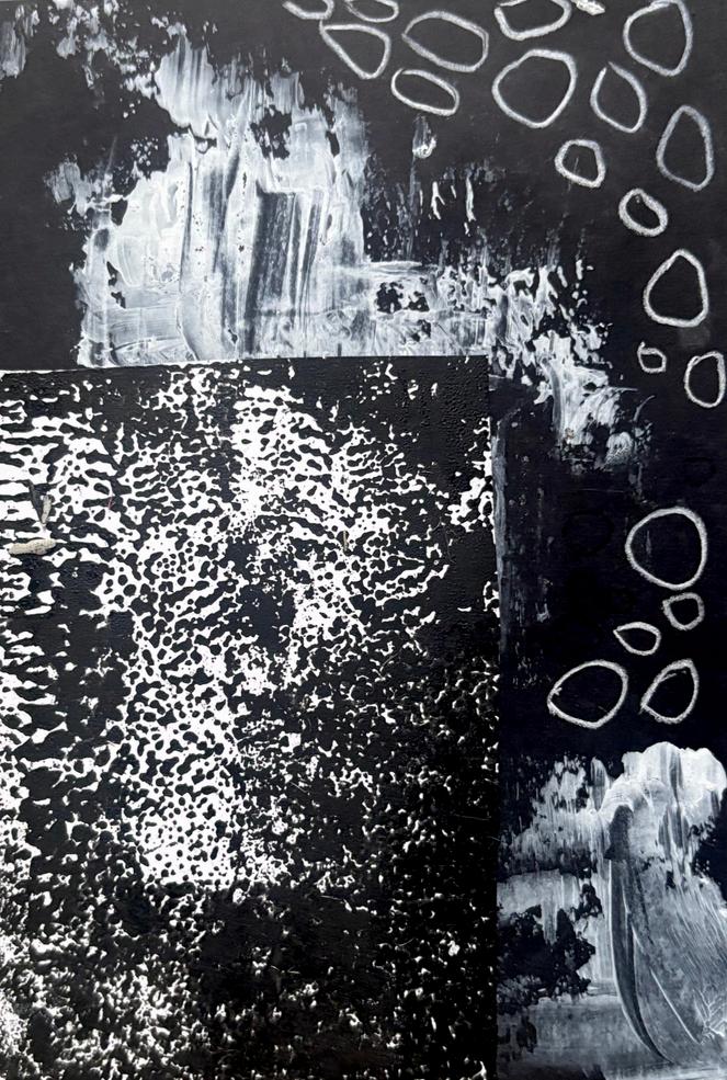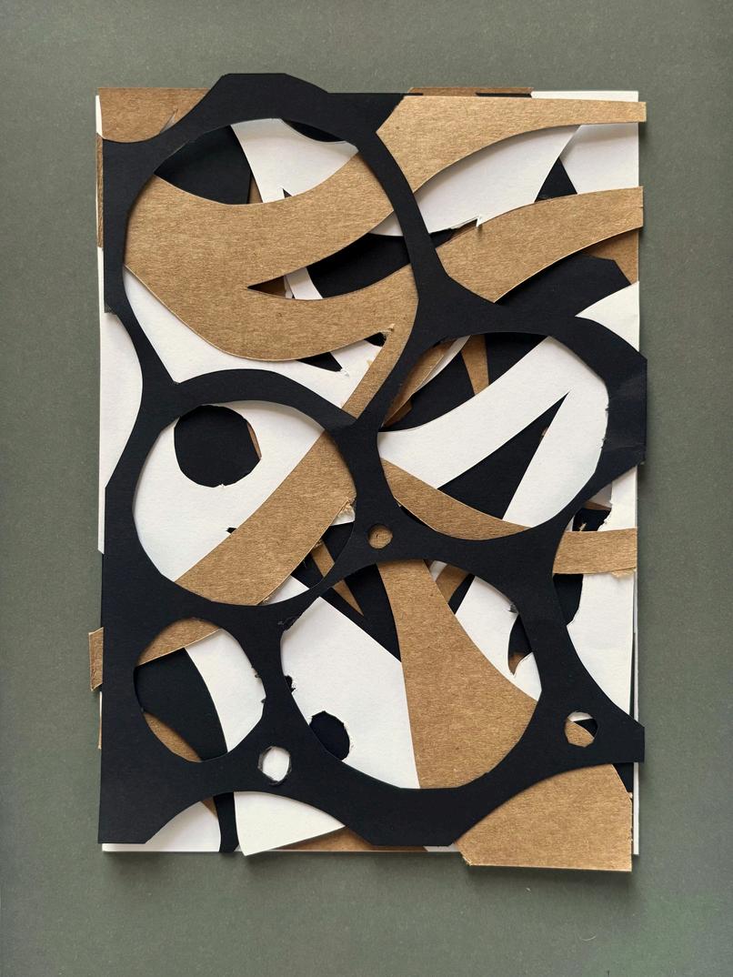 Working on creating unique shapes through different media. I was inspired by macro photgraphy of deteriorating buildings and rusting metal and wanted to show the idea of layers showing through each other in different ways which I achieved with paper cutouts. I then tried printing with materials I had around the house to create patterns (bubble wrap and clingfilm.) Dec 2025-Jan 2026.