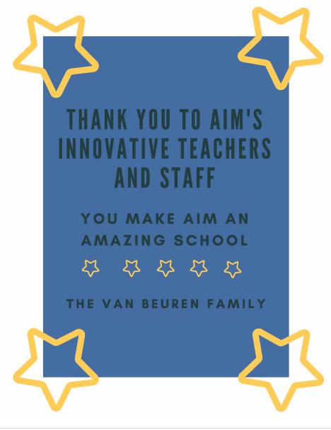 Thank you, AIM Academy for all you have done for our family these past 11 years! Wishing you a continued positive impact on the community. Scott, Julia, Eva Engel '22