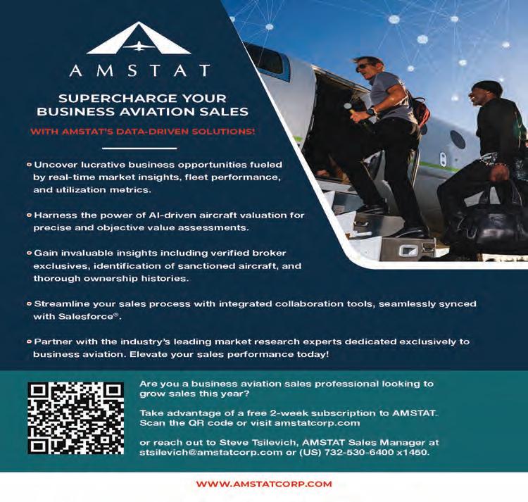 Aviation International News (ISSN 0887-9877) is published twelve times per year (monthly). Periodicals postage paid at Midland Park, N.J., and additional mailing o ces. Postmaster: Send address changes to AIN Media Group, 214 Franklin Ave., Midland Park, NJ 07432. Allow at least eight weeks for processing. Include old address as well as new, and an address label from a recent issue if possible. Subscription inquiries: +1 (201) 345-0085 or email: subscriptions@ainonline.com.