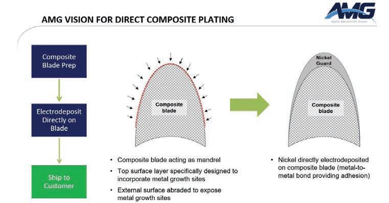 Alpha Metalcraft Group (AMG) believes it can reduce the cost and complexity of specialist manufacturing tasks such as applying the leadingedge guards that prolong the service life of carbon-fiber rotary blades. The company is working with OEMs, including developers of eVTOL aircraft, to introduce an electroplating process in which nickel is directly deposited on composite surfaces rather than making the guards separately and then fitting them to the blades.