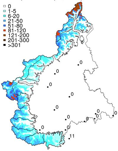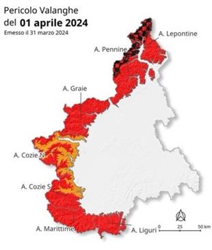 Durante l’inverno 25 giorni con almeno un settore di allerta con criticità gialla o arancione fra il 27/02 e il 02/05. La mattina del 1 aprile si è raggiunto il grado 5-Forte.