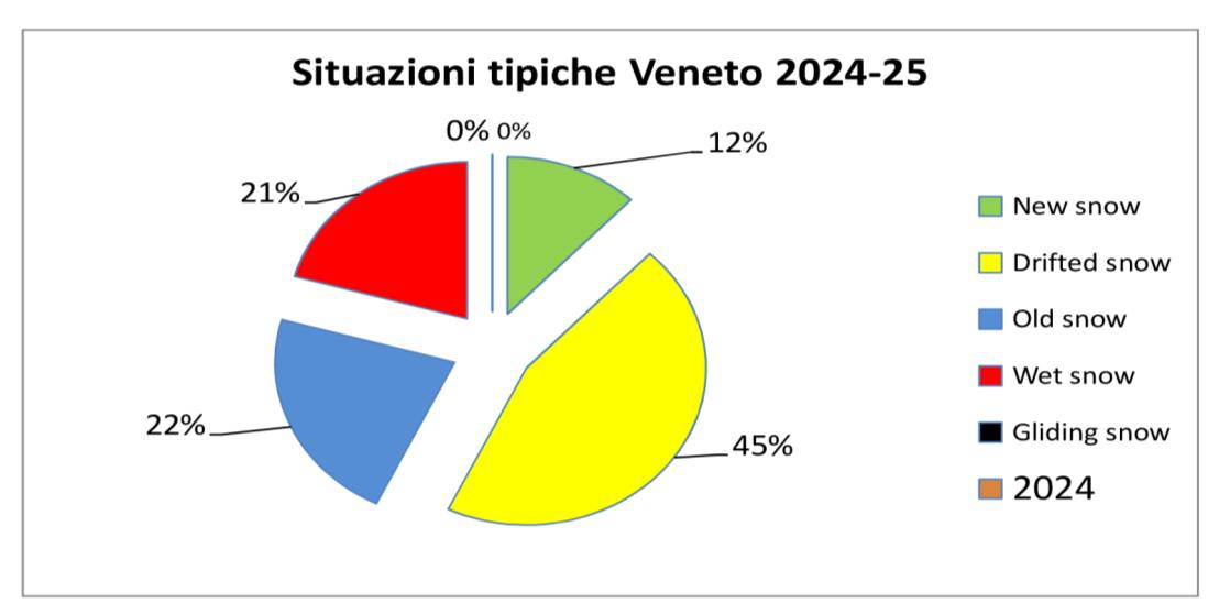 Distribuzione percentuale delle situazioni tipiche emesse in veneto durante la stagione