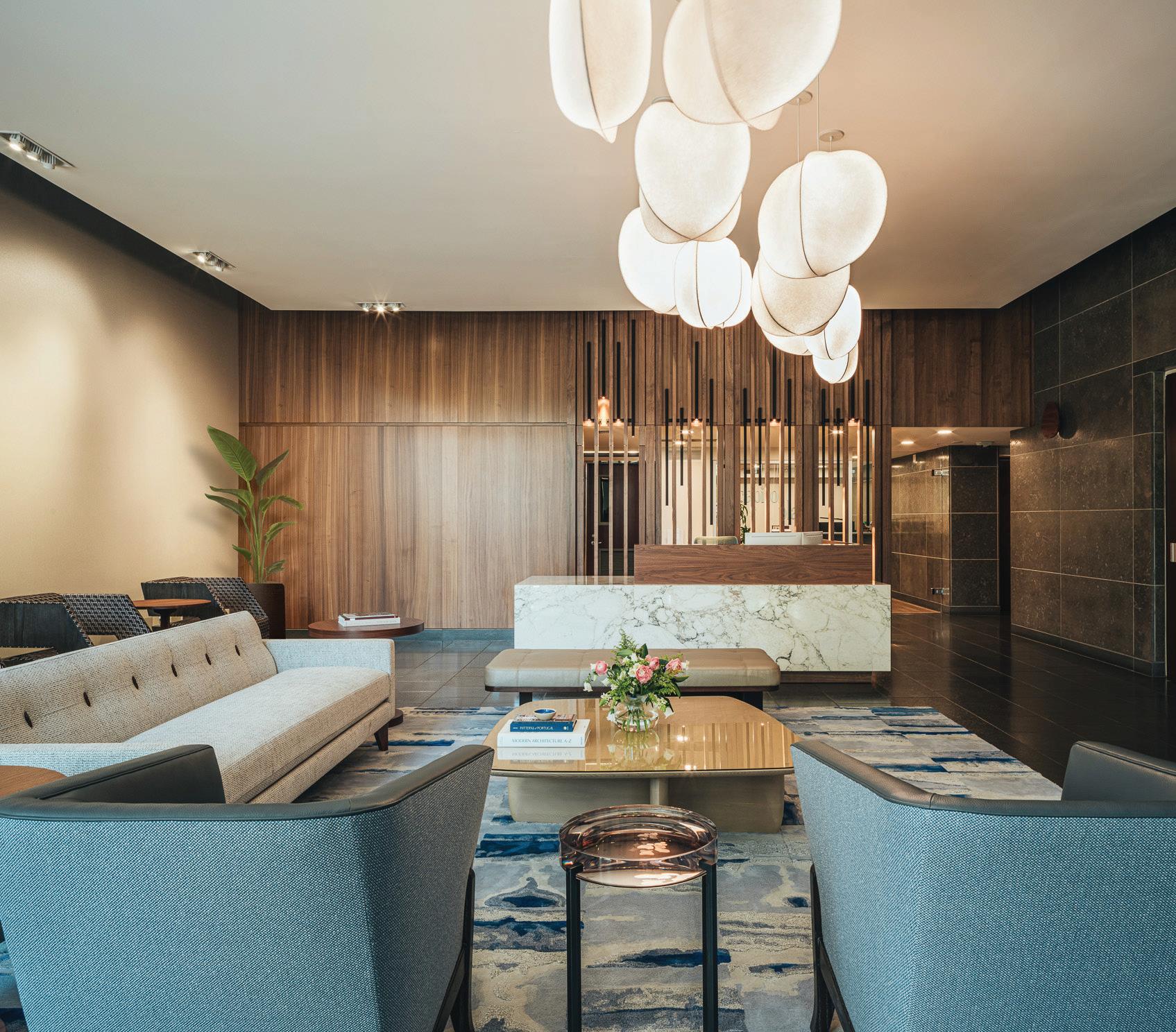 A 4,200-square-foot renovation of three amenity spaces – Lobby, Theatre, and Event Room – reimagined the resident experience at a luxury condominium. The redesign prioritized visibility, safety, and elegance while introducing flexibility, acoustic comfort, and upgraded functionality. The result is a modern, community-enhancing destination that honors place and promotes residential well-being