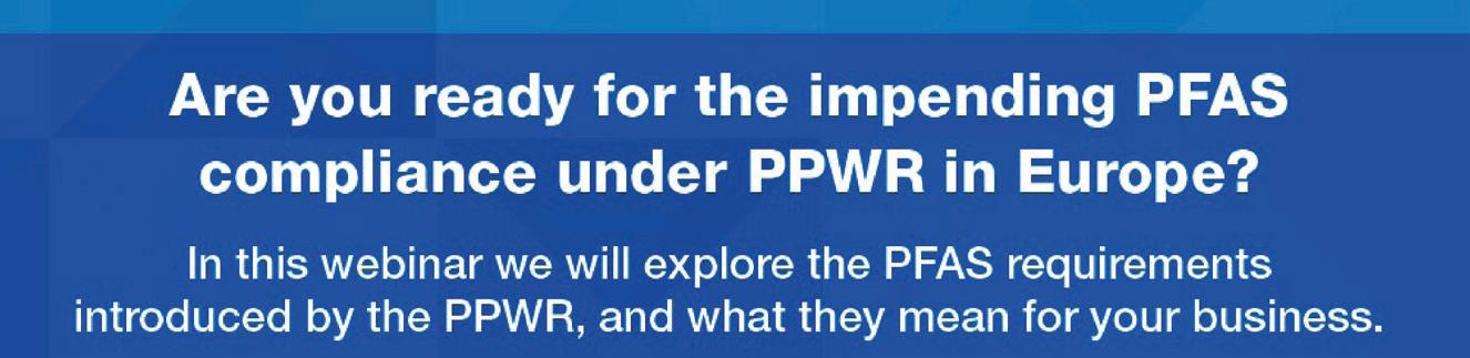 If you are selling into any country in Europe you need to be aware that from the 12th of August 2026, the Packaging & Packaging Waste Regulation (PPWR), will see restrictions on Per- and polyfluoroalkyl substances (PFAS) in food-contact packaging � The PPWR also addresses substances of concern (SoCs) and recycled content, both of which may have implications for PFAS content in other types of packaging