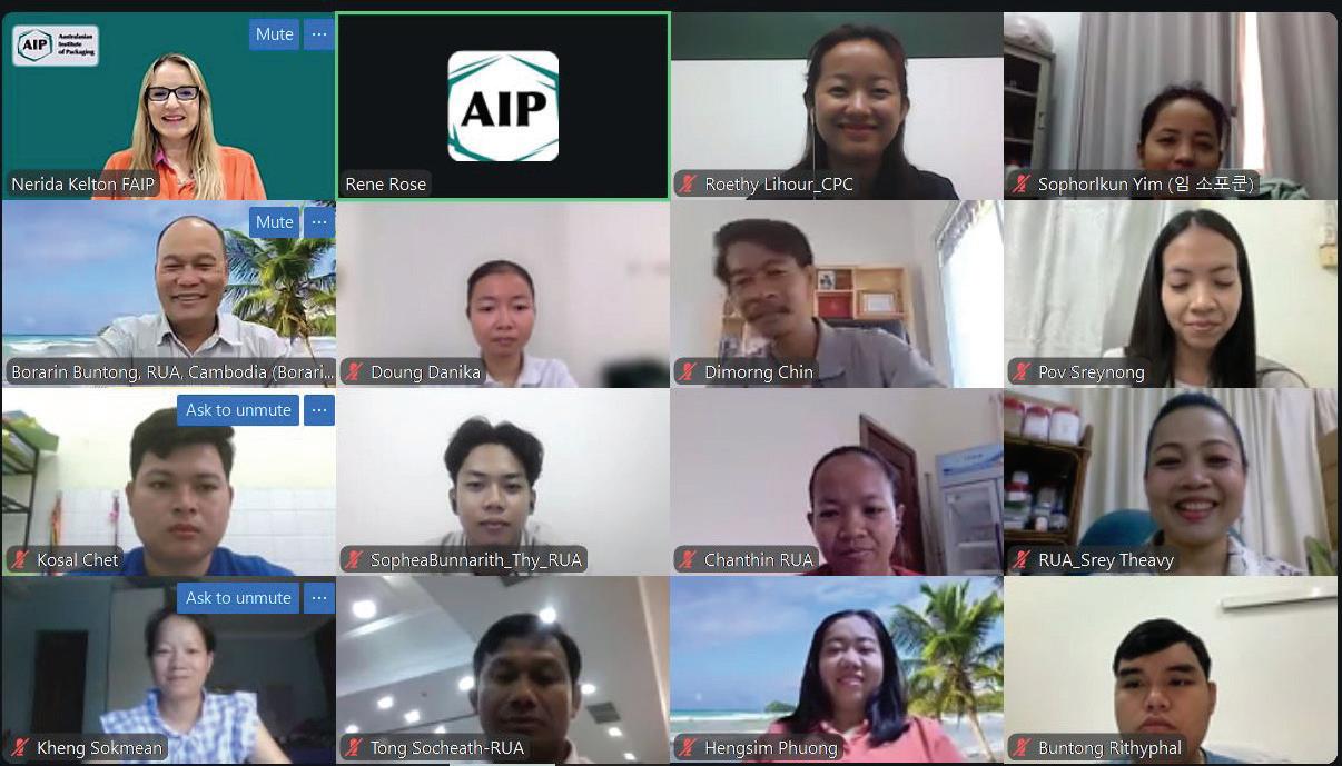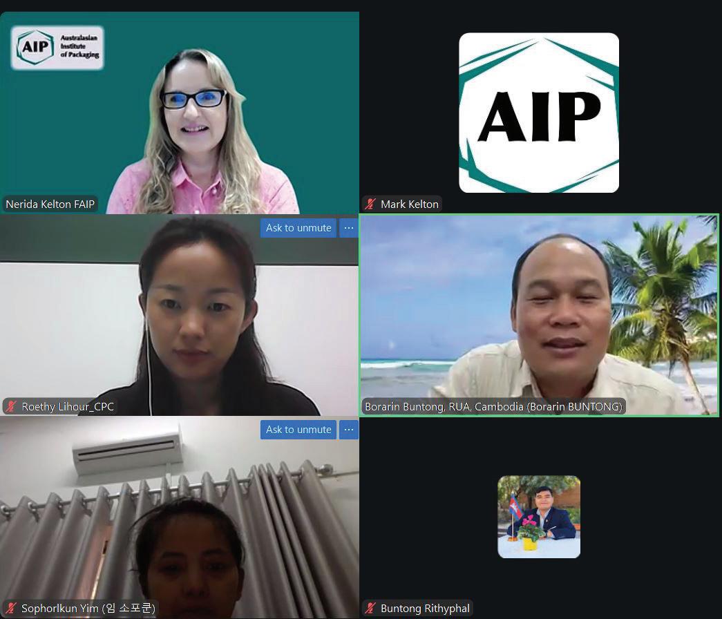 The AIP Australasian Institute of Packaging are very pleased to advise that they have just completed Stage 2 of the Cambodia training program which was 10x on-line training courses for the Cambodian Packaging Centre staff, students and lecturers of the Royal University of Agriculture Cambodia over the last three months. Stage 1 was seeing Ralph Moyle CPP FAIP going in-country to run an extensive week of training in person