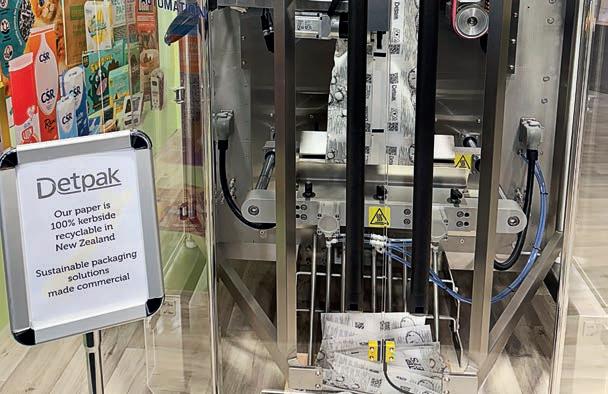 Officially launched for the firsttime at Foodtech Packtech 2025, Detpak introduced a commercially viable paper rewind solution that is 100 per cent New Zealand Kerbside Compliant. The new paper rewind solution is suited for products that do not require extended shelf life, or where the contents are already