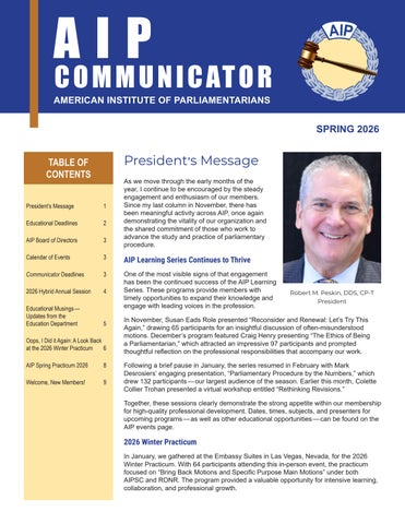 The mission of AIP is to develop skillful, highly trained parliamentarians and to improve parliamentary procedure in organizations that want a fair, democratic, and effective decision-making process.